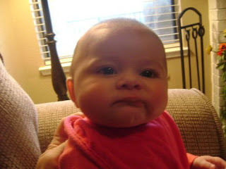 Okay, so tonight I decided to try out the big bath tub with Annie. The other night I tried taking the hammock off of the little bath tub while Annie was laying on it. Big mistake....the strap was on so tight that it flew back and hit her and then she fell into the water. And came out crying! Then I tried to sit her up on the little step inside the tub, but the tub was leaning forward so she wasn't able to sit. So then I tried to just put her in the bigger part of the tub, bad idea, she flopped around and slide almost under the water. It was by far her worst bath time ever! So tonight I figured I would put the little tub in the big tub and see how she did. I put a towel at the bottom so she wouldn't slide. She loved it! I read her two books and cleaned her all up. But then I wanted to see how she would do in the deeper part of the little tub, she hated it. I think she was scared at how deep she was so she started to cry. Then when I turned the water on in the tub, she started to cry. The noise was too loud for her. But, it wasn't that bad of an experience. My mom got it all on the camera! Enjoy!